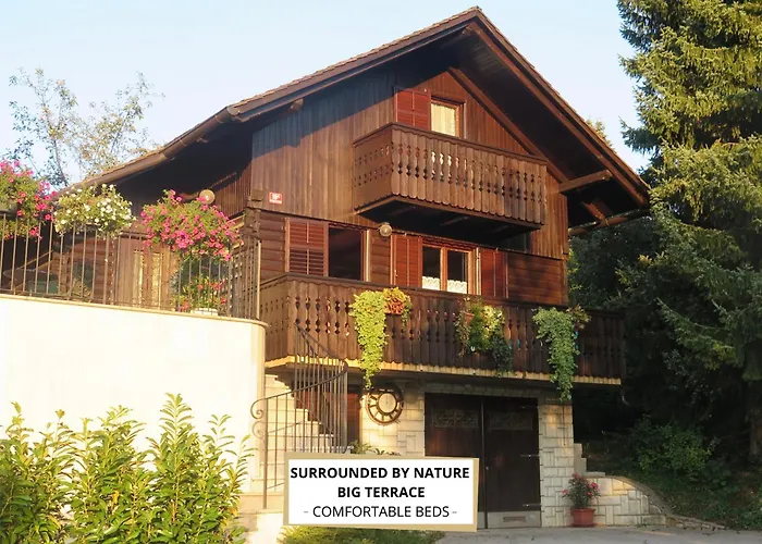 Sunset Chalet Škofljica med 1 sovrum, som ligger cirka 25 minuter till fots från Sv. Ahac, erbjuder gästerna en terrass där de kan koppla av.